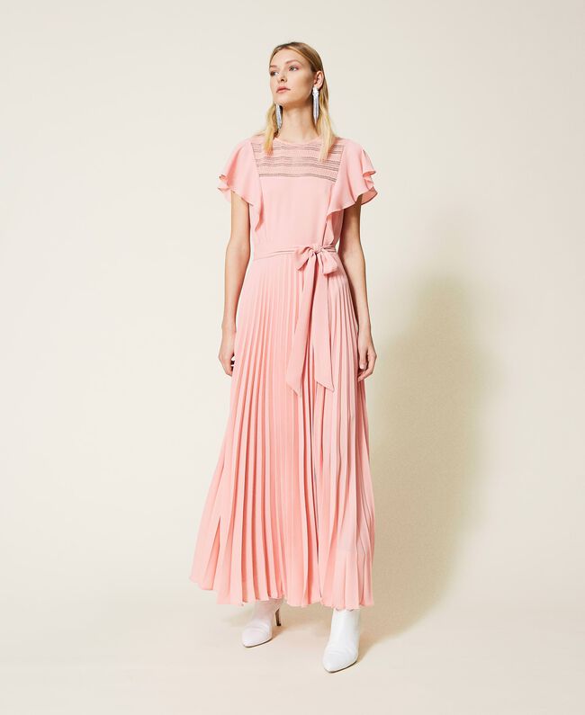 Šifra proizvoda: 121043HaljinaTwinset 221TP2670Romantična duga haljina od krepa , plisiranom suknjom, kratkim naboranim rukavima, odgovarajućim remenom. BRAND: Twin SetSPOL: ŽeneBOJA: RužičastaMATERIJAL: PoliamidProizvod je nedostupan!!